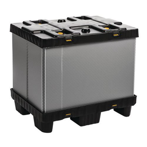 Vouwbare Euro-pallet Mega Pack, Totale inhoud: 217 L, Max. belasting: 500 kg, Totale hoogte: 700 mm, Totale breedte: 600 mm, Totale lengte: 800 mm, Gebruik voor voedsel: nee, Kleur: Grijs, Type: Met vaste scheidingswanden aan de zijkant, Model: Dicht, Pallet basis: 6 voeten, Ingeklapte hoogte: 250 mm, Materiaal: Polypropyleen, Nuttige hoogte: 520 mm, Nuttige breedte: 550 mm, Recyclebare verpakking: Ja - 100%, Recyclebaar product: Ja - 100%, Gerecycled product: 60 %, Eco-verantwoordelijke aanpak: ja, Gewicht: 9 kg, Min. gebruikstemperatuur: -20 °C, Nuttige lengte: 750 mm