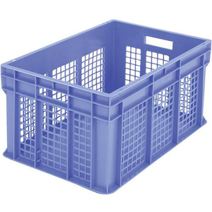 Euro-normbak BN met ergonomisch doorgrijphandvatten 600x400 mm, Totale inhoud: 62 L, Stapelbaar: ja, Totale hoogte: 315 mm, Totale breedte: 400 mm, Totale lengte: 600 mm, Euronorm-bak inhoud (Reeks): Groot (41 - 175 L), Type zijkant: Geperforeerd, Gebruik voor voedsel: ja, Bak kleur: Blauw, Type opening: Met geperforeerde wanden, Materiaal: Kunststof, Type bodem: Gesloten, Max. belasting: 40 kg, Max. dynamisch stapelvermogen: 400 kg, Materiaal: Polypropyleen, Afmeting: Groot, Nestbaar: ja, Nuttige breedte: 360 mm, Gerecycled: ja, Stapelbaar: ja, Min. gebruikstemperatuur: -20 °C, Max. gebruikstemperatuur: 80 °C, Model: BN6432, Gebruik: Voedingsmiddelenindustrie, Nuttige hoogte: 311 mm, Breedte opening: 360 mm, Lengte opening: 560 mm, Nuttige lengte: 560 mm, Koelen/vriezen: ja