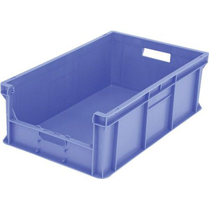 Euro-normbak BN met ergonomisch doorgrijphandvatten 600x400 mm, Totale inhoud: 42 L, Stapelbaar: ja, Totale hoogte: 215 mm, Totale breedte: 400 mm, Totale lengte: 600 mm, Euronorm-bak inhoud (Reeks): Groot (41 - 175 L), Type zijkant: Gesloten, Gebruik voor voedsel: ja, Bak kleur: Blauw, Type opening: Met doorkijk-/ pickopening aan kopse kant, Materiaal: Kunststof, Type bodem: Gesloten, Max. belasting: 40 kg, Max. dynamisch stapelvermogen: 250 kg, Materiaal: Polypropyleen, Afmeting: Groot, Nestbaar: ja, Nuttige breedte: 360 mm, Gerecycled: ja, Stapelbaar: ja, Min. gebruikstemperatuur: -20 °C, Max. gebruikstemperatuur: 80 °C, Model: BN6424, Gebruik: Voedingsmiddelenindustrie, Nuttige hoogte: 211 mm, Breedte opening: 360 mm, Lengte opening: 560 mm, Nuttige lengte: 560 mm, Koelen/vriezen: ja