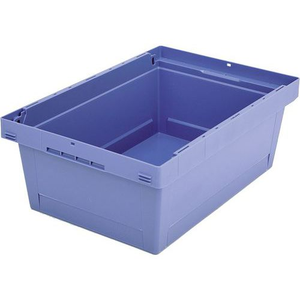 tot 75 % minder leegvolume door ze te nesten. multifunctioneel: ideaal voor distributie, opslag en orderverzamelen. De bakken werden speciaal voor de behoeften van pakketdiensten ontwikkeld en door de Deutsche Post AG als €œgeschikt voor installaties€ vrijgegeven.. eenmalig te gebruiken dekselzegels sluiten het klapdeksel veilig af en vormen een controlemiddel tegen openen van de bak door onbevoegden. ergonomisch gevormde handgrepen voor een hoog draag- en trekcomfort