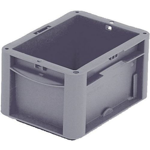 Stapelbare Euronorm-bak serie XL, standaardmodel van polypropyleen. Geschikt voor Euronorm-pallets. Verborgen handgrepen aan de voorzijde voor eenvoudig verplaatsen. Bak geschikt voor opslag in magazijnen en productie.