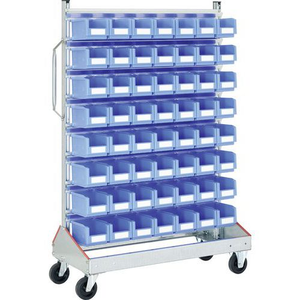 Mobiel rek enkelzijdig, Totale hoogte: 1705 mm, Totale breedte: 510 mm, Bak kleur: Blauw, Aantal bakken/kleuren/vermogen: 56 x SK2311 blauw, Materiaal: Polypropyleen, Lengte: 1130 mm, Recyclebare verpakking: Ja - 100%, Recyclebaar product: Ja - 100%