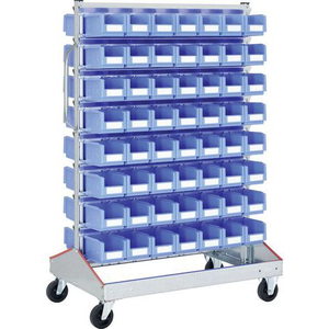 Mobiel rek dubbelzijdig, Totale hoogte: 1705 mm, Totale breedte: 710 mm, Bak kleur: Blauw, Aantal bakken/kleuren/vermogen: 112 x SK2311 blauw, Materiaal: Polypropyleen, Lengte: 1130 mm, Recyclebare verpakking: Ja - 100%, Recyclebaar product: Ja - 100%