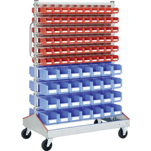 Mobiel rek dubbelzijdig, Totale hoogte: 1705 mm, Totale breedte: 710 mm, Bak kleur: Blauw/rood, Aantal bakken/kleuren/vermogen: 120 x SK1610 rood 56 x SK2311 blauw, Materiaal: Polypropyleen, Lengte: 1130 mm, Recyclebare verpakking: Ja - 100%, Recyclebaar product: Ja - 100%