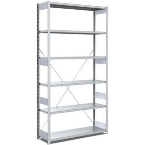 Lichte, veelzijdige industriƫle stelling. Stevige, gegalvaniseerde afwerking. Legbord heeft geperforeerde rand voor tussenschotten. Snelle montage, zonder schroeven of bouten. Optimale opbergruimte: legbord is in hoogte verstelbaar.