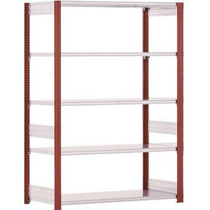 Legbordstelling, Max. belasting per legbord: 100 kg, Hoogte: 200 cm, Aantal legborden: 5, Type legbord: Massief, Breedte: 1000 mm, Diepte: 30 cm, Coating: Gegalvaniseerd, Type element: Basis, Model: EL, Legbord materiaal: Staal, Kleur juk: Grijs, Kleur staander: Rood, Kleur ligger: Grijs, Legbord kleur: Grijs, RAL: 3000, Stelling voor: Losse onderdelen, Configureerbaar: nee, Afstand verstelbaarheid: 25 mm, Max. belasting: 800 kg, Montage: Zelfbouw, Materiaal: Staal, Lean Management: ja, Aantal niveaus: 5, Staander materiaal: Staal, Juk geleverd gemonteerd: nee, Frame materiaal: Staal, Montagesysteem: Zonder schroeven of bouten, Verpakking: Eenheid, Aantal voeten: 6, Staander breedte: 32.4 cm, Max. belasting per juk: 100 kg, Aantal kruisschoren: 3, Afstand: 25 mm, Type juk: Open, Aantal staanders: 3, Type stelling: Lichte stelling, Geen gereedschap nodig: ja