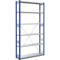 Legbordstelling, Max. belasting per legbord: 100 kg, Hoogte: 250 cm, Aantal legborden: 5, Type legbord: Massief, Breedte: 1000 mm, Diepte: 52 cm, Coating: Gegalvaniseerd, Type element: Basis, Model: EL, Legbord materiaal: Staal, Kleur juk: Grijs, Kleur staander: Blauw, Kleur ligger: Grijs, Legbord kleur: Grijs, RAL: 5010, Stelling voor: Reinigingsproducten, Configureerbaar: ja, Bereik stelling: Combi-Class, Afstand verstelbaarheid: 25 mm, Max. belasting: 800 kg, Max. belasting per element: 100 kg, Montage: Zelfbouw, Materiaal: Staal, Lean Management: ja, Aantal niveaus: 5, Staander materiaal: Staal, Juk geleverd gemonteerd: nee, Frame materiaal: Staal, Montagesysteem: Zonder glad, Verpakking: Eenheid, Aantal voeten: 6, Staander breedte: 5 cm, Max. belasting per juk: 100 kg, Aantal jukken: 5, Aantal kruisschoren: 1, Afstand: 25 mm, Type juk: Open, Aantal staanders: 6, Type stelling: Lichte stelling, Geen gereedschap nodig: ja, Dekra: ja
