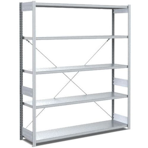 Legbordstelling, Max. belasting per legbord: 100 kg, Hoogte: 200 cm, Aantal legborden: 5, Type legbord: Massief, Breedte: 1000 mm, Diepte: 40 cm, Coating: Gegalvaniseerd, Type element: Basis, Model: EL, Legbord materiaal: Staal, Kleur juk: Grijs, Kleur staander: Grijs, Kleur ligger: Grijs, Legbord kleur: Grijs, RAL: 7035, Stelling voor: Losse onderdelen, Configureerbaar: nee, Afstand verstelbaarheid: 25 mm, Max. belasting: 800 kg, Montage: Zelfbouw, Materiaal: Staal, Lean Management: ja, Aantal niveaus: 5, Staander materiaal: Staal, Juk geleverd gemonteerd: nee, Frame materiaal: Staal, Montagesysteem: Zonder schroeven of bouten, Verpakking: Eenheid, Aantal voeten: 6, Staander breedte: 42.4 cm, Max. belasting per juk: 100 kg, Aantal kruisschoren: 3, Afstand: 25 mm, Type juk: Open, Aantal staanders: 3, Type stelling: Lichte stelling, Geen gereedschap nodig: ja