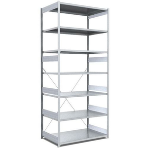 Lichte, veelzijdige industriƫle stelling. Legbord heeft geperforeerde rand voor tussenschotten. De legborden zijn in hoogte verstelbaar. Snelle montage, zonder schroeven of bouten.