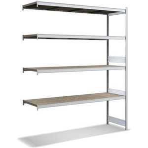 Grootvakstelling met legbord van houtvezelplaat DxH 624x2500 mm, Max. belasting per legbord: 350 kg, Hoogte: 2500 mm, Aantal legborden: 4, Type legbord: Dicht, Breedte: 2000 mm, Diepte: 624 mm, Coating: Gegalvaniseerd, Type element: Aanbouw, Legbord materiaal: Exotisch hout, Aantal verdiepingen: 4, Frame materiaal: Staal, Kleur juk: Zilver/verzinkt, Kleur staander: Zilver/verzinkt, Kleur ligger: Zilver/verzinkt, Legbord kleur: Zilver/verzinkt, Stelling voor: Volumineuze producten, Configureerbaar: ja, Afstand verstelbaarheid: 25 mm, Max. belasting: 1600 kg, Montage: Zelfbouw, Materiaal: Spaanplaat, Totale breedte: 2016 mm, Juk geleverd gemonteerd: nee, Type juk: Open, Aantal staanders: 2, Type stelling: Zwaarlast stelling, Geen gereedschap nodig: ja