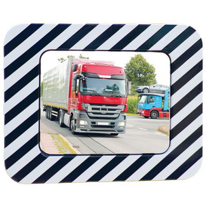 Verkeersspiegel rvs, zwart/wit frame, Bewakingsradius: 15 m, Vorm: Rechthoek, Frame kleur: Zwart/wit, Zicht: 110 °, Breedte spiegel: 600 mm, Hoogte spiegel: 400 mm, Materiaal: Staal, Gebruiksomgeving: Binnen e Buitenterrein, Recyclebare verpakking: Ja - 100%, Gerecyclede verpakkingen: 100 %, Spiegel materiaal: Rvs