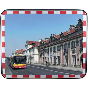 Verkeersspiegel voor betere veiligheid op de weg. Uitstekende beeldkwaliteit zonder vervorming dankzij de metalen plaat die aan de achterzijde is bevestigd. Duurzaam en robuust: getest op windstoten bij windkracht 12 (orkaan van meer dan 117 km/u). Rood/wit frame voor een betere zichtbaarheid. Eenvoudig te monteren dankzij de verticale of horizontale 2-puntsbevestiging. Spiegel van acryl: 70procent sterker dan glas.