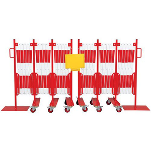 Harmonicahek standaard, Gebruik: Magazijn/Opslagruimte, Kleur: Rood/wit, Totale lengte: 16000 mm, Totale hoogte: 1050 mm, Materiaal: Staal, Lengte grondplaat: 400 mm, Breedte grondplaat: 300 mm, Grondplaat dikte: 6 mm, Type afbakenen: Tijdelijke, Recyclebare verpakking: Ja - 100%, Gerecyclede verpakkingen: 100 %, Gerecycled product: 99.9 %, Eco-verantwoordelijke aanpak: ja