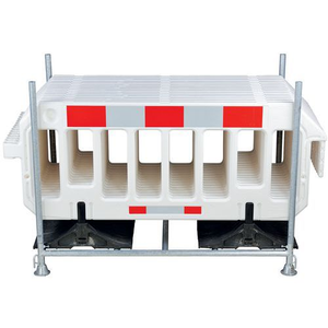 Modulaire en snelle oplossing om tijdelijk ruimtes af te bakenen Set bestaande uit modulaire hekken en een transportrek voor het tijdelijk afbakenen van zones. Elk hek is uitgerust met een haak en een oogje om aan elkaar te bevestigen, achter elkaar in een rij of in een vierkante vorm. De hekken zijn voorzien van reflecterende stroken voor optimale zichtbaarheid. Gegalvaniseerd opbergrek, te hanteren met een heftruck of een pallettruck. Geschikt voor buitengebruik.