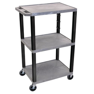 Wagen van gerecycled kunststof, Max. belasting: 180 kg, Totale hoogte: 1080 mm, Totale breedte: 460 mm, Totale lengte: 610 mm, Aantal plateaus: 3, Model: Luxor, Kleur: Grijs, Hoogte bovenste/onderste plateau: 420 mm, Gewicht: 13 kg