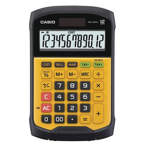 Helpt u bij uw dagelijkse werkzaamheden op kantoor en bij de klant! Rekenmachine bestand tegen water en stof, WM320MT Casio Verwijderbaar en wasbaar toetsenbord. Groot LCD-scherm. Dubbele voeding met batterij en zonne-energie.