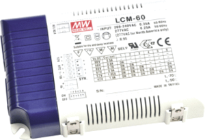 Mean Well LCM led driver statisch, dimbaar DALI, dimbaar met push-button, behuizing kunststof behuizing, geschikt voor constante stroom, uitgangsspanning 42V, uitgangsstroom 1400mA, geschikt voor gelijkspanning (prima, uitgangsvermogen 60W, beschermingsgraad (IP) IP20