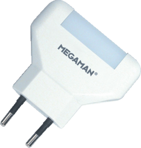 Megaman nachtlamp, met lichtbron, behuizing wit, 1W, nom. spanning 230V, met eurostekker, prismatisch deksel