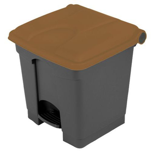 Kunststof afvalbak voedingsmiddelen, Totale inhoud: 30 L, Opening: Met pedaal, Materiaal: Kunststof, Vuilnisbak inhoud (Reeks): Gemiddelde (11 - 90 L), Afvalbak voor voedingsmiddelen: nee, Kleur: Grijs Bruin, Materiaal: Polypropyleen, Body kleur: Grijs, Deksel kleur: Bruin, Vorm: Rechthoek, Gerecycled product: 50 %, Eco-verantwoordelijke aanpak: ja, Gebruik: Voedingsmiddelenindustrie Indoor goederenbehandeling Collectiviteit Opslaan Tertiaire sector Magazijn/Opslagruimte Bouwterrein Werkplaats