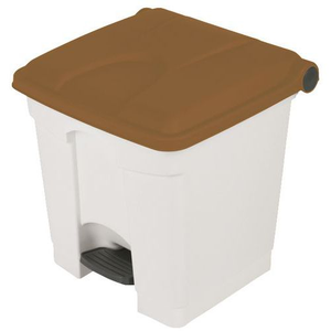 Kunststof afvalbak voedingsmiddelen, Totale inhoud: 30 L, Opening: Met pedaal, Materiaal: Kunststof, Vuilnisbak inhoud (Reeks): Gemiddelde (11 - 90 L), Afvalbak voor voedingsmiddelen: nee, Kleur: Wit Bruin, Materiaal: Polypropyleen, Body kleur: Wit, Deksel kleur: Bruin, Vorm: Rechthoek, Gerecycled product: 50 %, Eco-verantwoordelijke aanpak: ja, Gebruik: Voedingsmiddelenindustrie Indoor goederenbehandeling Collectiviteit Opslaan Tertiaire sector Magazijn/Opslagruimte Bouwterrein Werkplaats