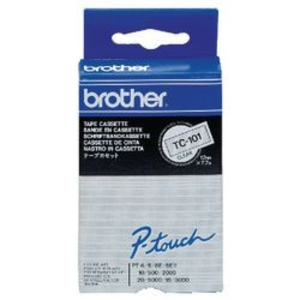 Brother TC-101 Authentiek Labeltape Zelfklevend Zwart op transparant 12 mm x 7.7m