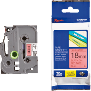 Brother labeltape, tekstkleur zwart, bandkleur rood, bandlengte 8m, breedte band 18mm, toepassing universeel