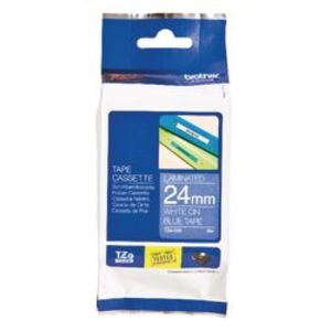 Brother Labeltape TZE555. Geschikt voor: P-touch 350, 540, 540C, 550, 2400, 2400E, 2420PC, 2450 en 2450DX. Afmetingen: 24 mm x 8 m (BxL). Kleur: Wit, blauw.