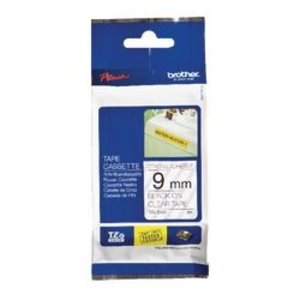 Brother extra klevende tape TZES121. Formaat: 9 mm. x 8 m. kleur: zwart/transparant.