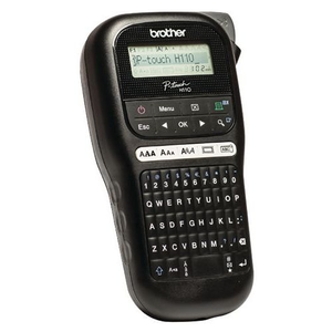 Labelprinter Brother PT-H110 azerty, Voeding: Netvoeding en batterij, Breedte: 11.1 cm, Hoogte: 5.8 cm, Diepte: 20.4 cm, Type batterij: AAA/LR03, PC-aansluiting: nee, Lean Management: ja, Gewicht: 400 g, Type tape: Lint TZe, Type toetsenbord: Azerty, Type scherm: LCD, Type: Labelprinter, Toepassing: Kantoor, Gebruik: Standaard, Voor breedte lint: 3,5-12 mm