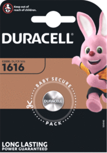 Duracell Electronics batterij, niet oplaadbaar lithium, diameter 16mm, nom. spanning 3V, grootte aanduiding knoopcel, hoogte incl. pool 1.6mm, capaciteit 45mAh, IEC-aanduiding CR 1616