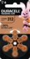 Duracell batterij, niet oplaadbaar, diameter 7.9mm, lengte 4.9mm, uitvoering zink/Lucht, nom. spanning 1.4V, grootte aanduiding knoopcel, IEC-aanduiding PR 41, 6 cellen, gewicht 3g