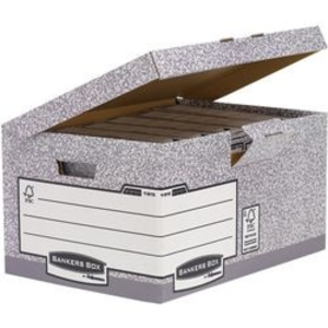 Fellowes Archiefdozen Bankers Box Maxi. Materiaal: gerecycled karton. Afmetingen (binnenkant): 293 x 378 x 545 mm (H x B x D). Afmetingen (buitenkant) 31 x 39 x 56 ( H x B x D). Kleur: grijs. Inhoud: 10 stuks.