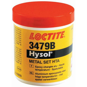 Epoxyhars, Inhoud: 500 g, Voor materiaal: Aluminium, Consistentie: Pasta-achtig, Weerstand trekkracht (oppervlakte wrijving): 90 N/mm², Afschuifweerstand staal: 20 N/mm², Afschuifweerstand aluminium: 12 N/mm², Hardheid: 85 HRD, Gebruikstemperatuur: -20 tot 190 °C, Uithardingstijd: 150 min, Mengratio: 1/1, Model: Hysol 3479, CLP - Gevaarlijk voor het milieu: H411 - Toxique pour les organismes aquatiques, entraîne des effets néfastes à long terme, CLP - Gevaarlijk voor de ozonlaag: ja, Kleur: Grijs