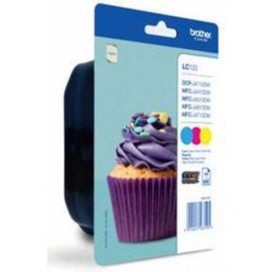 Brother inktcartridge LC123. Deze inktcartridges zijn geschikt voor de volgende Brother printers: DCP J4110DW, MFC J4410DW, J4510DW, J6520DW, J6720DW, J6920DW. Tevens beschikken deze over een capaciteit van circa 3 x 600 paginas bij 5% dekking. Kleur: cyaan, magenta, geel.