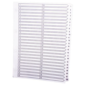 Tabblad 50 st bedrukt 160g geplastificeerd tabs 1 tot 50 A4, Aantal tabs: 50, Kleur: Wit, Voor formaat: 210 x 297 mm (A4), Materiaal: Karton, Gramsgewicht: 160 g/m², Eco-verantwoordelijke aanpak: ja, FSC licentie: ja
