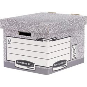 Fellowes opbergdoos Bankers Box 00810-FFEU. Met deksel. Materiaal: karton. Afmetingen: 333 x 285 x 390 mm. Kleur: grijs, wit. Hoeveelheid: pak 10 stuks.