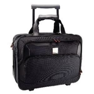 Monolith laptoptas, met uitneembare laptophoes (voor 15-Inch-scherm). Binnenin 1 compartiment verdeeld in 2 opbergvakken. Vooraan een opbergvak met indeling voor bijvoorbeeld visitekaartjes en balpennen. Met 2 gewatteerde handvatten en een telescopisch handvat. Kleur: Zwart. Materiaal: 1680 denier nylon en accenten in leatherlook. Aantal wielen: 2. Afmetingen: 42,5 x 32,5 x 20 cm.