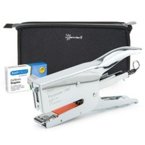 Rapesco nietmachine Porpoise One. Kleur: chroom. Diepte: 175mm. Volledig strip / Halve strip: volledig strip. Hoogte: 92mm. Bij de levering inbegrepen: niettang, 1000 x 24/8mm Rapesco nietjes, bacteriedodende opbergtas. Materiaal: metaal. Model: 1626. Productlijn: Stapling plier. Product Type: nietmachine. Nietvermogen: 45 vel. Depotvolume: 200. Gewicht: 368. Breedte: 22mm.