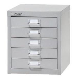 Bisley 5-ladenkast. Materiaal: metaal. Afmetingen (B x D x H): 279 x 408 x 330 mm. Hoogte lade: 51 mm. Kleur: grijs.