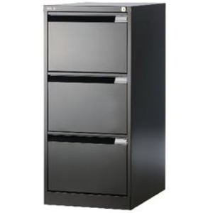 Bisley archiefkast. De archiefkast zijn geschikt voor archivering in A4, folio en groot folioformaat. De 3 laden zijn vervaardigd uit staal en hebben een telescopische geleiding en ladenblokkering en daardoor is er per keer een lade 100% uittrekbaar en er kunnen ca. 25 hangmappen in een rij. De ladenkast is voorzien van een centrale sluiting en de handgrepen zijn voorzien van etikethouders. Afmetingen (B x D x H): 47,0 x 62,2 x 101,6 cm. Draagkracht: 35 kg. Kleur: zwart.