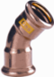Vsh XPRESS KOPER GAS G7041 fitting met 2 aansluitingen 1-delig, lengte 43mm, bocht, uitwendige buisdiameter aansluiting 35mm, nom. diameter aansluiting 1 DN 32, aansluiting 1 koper, uitwendige buisdiameter aansluiting 35mm, aansluiting 1 persmof, nom. diameter aansluiting 2 DN 32,