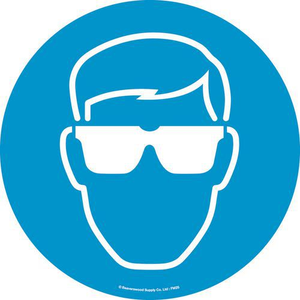 Ronde vloersticker, Materiaal: PVC, Paneel vorm: Rond, Ø: 430 mm, Type bord: Verplichting, Zelfklevend: ja, Stijf: nee, Opdruk: Het dragen van een bril is verplicht