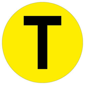 Cirkel voor vloermarkering, Materiaal: Vinyl, Lean Management: ja, Breedte: 190 mm, Kleur: Geel, Model: Letter, Opdruk: T, Ø: 190 mm, Special Covid-19: nee