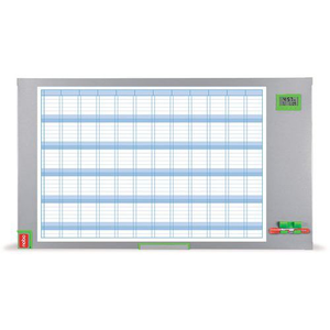 Organiseer uw projecten met de Nobo Performance Plus jaarplanner. Het oppervlak is aanpasbaar, magnetisch en droog uitwisbaar, zodat u uw planning of projecten voortdurend kunt bijwerken. De zijstrook kan ook worden gebruikt om uw aantekeningen of afspraken op te schrijven die u niet mag vergeten. Het scherm geeft de tijd en datum weer, zodat u uw belangrijke deadlines in de gaten kunt houden. Houd uw accessoires zoals uw markers of magneten binnen handbereik dankzij het uittrekbare opbergvak, voor een optimale organisatie. De metalen structuur is gelakt en licht, maar ook zeer elegant om een ​​vleugje moderniteit aan uw werkruimte toe te voegen.