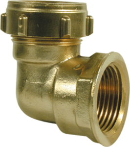 Conex Bänninger Sanbra fitting met 2 aansluitingen, knie, uitwendige buisdiameter aansluiting 12mm, aansluiting 1 messing, nom. diameter aansluiting 2 1/2" (15), gastec QA, KIWA-keur, oppervlaktebescherming aansluiting geen (onbehandeld), bochthoek 90°,