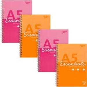Pukka Essentials Schrijfblok A5 Geruit Dubbeldraads Zijgebonden Karton Harde rug Kleurenassortiment Geperforeerd 160 Pagina's Pak van 4
