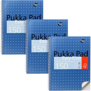 Pukka Metallic Schrijfblok A4 Geruit Dubbeldraads Zijgebonden Karton Harde rug Metallic blauw Geperforeerd 150 Pagina's Pak van 3