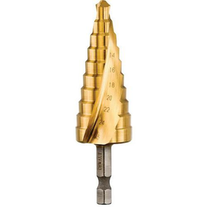 Trappenboor.Zorgt voor snellere indringing in het materiaal. Maakt precies boren zonder verplaatsing mogelijk. Titanium coating voor grotere weerstand.