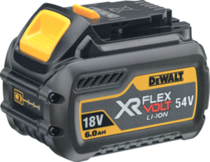Dewalt XR FLEXVOLT accu (lood) li-Ion, (bxl) 85x125mm, capaciteit 20h 6Ah, nom. spanning 18V, hoogte incl. pool 90mm, kunststof behuizing