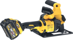Dewalt sleuvenfreesmachine (elektrisch), spanning 54V, groefbreedte 8 - 35mm, schijfdiameter 125mm, snijdiepte 0 - 32mm, gereedschapopname 22.23mm, machinegewicht 3.7kg, toerental onbelast 90001/min, aansluiting stofafzuiging, meegeleverde diamantschijven 2, koffer, breekbeitel, met frees